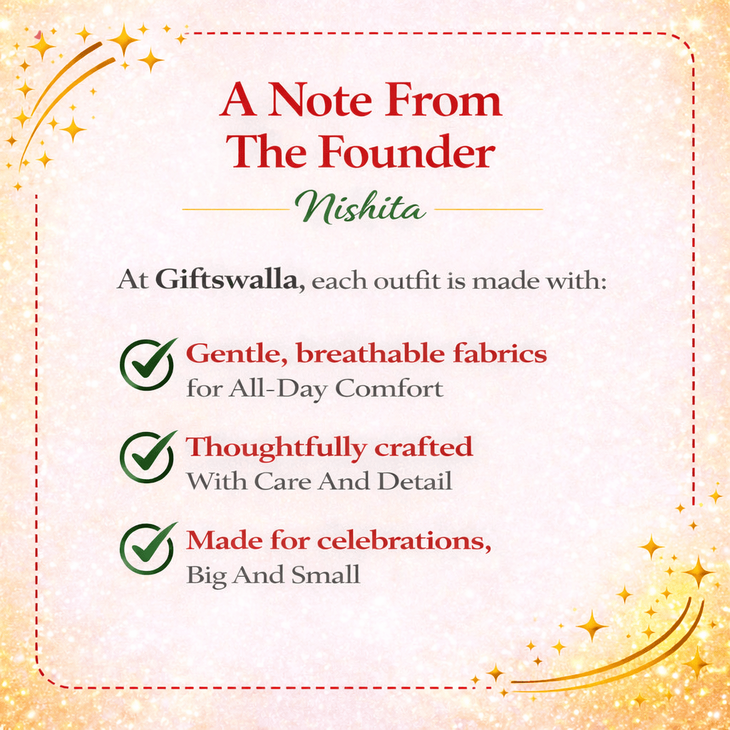 GiftsWalla was born from a simple idea—that the best gifts aren’t just beautiful, they’re thoughtful. From premium kids’ ethnic wear in soft cotton and mulmul to curated twinning sets that create memories, we handpick every piece with one question in mind: Would we gift this to someone we love?